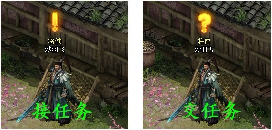NPC头顶有惊叹号表示有任务可接,头顶有问号表示有任务可交。左键点NPC就可以接任务或交任务。