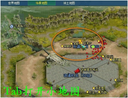 2.方法二“小地图”:按"Tab"打开小地图,用鼠标左键点小地图任意位置可自动到达。