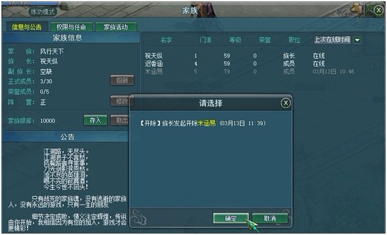 1.开除成员:在家族面板中,右键选中家族成员,可发起开除申请。60分钟内有2名正式成员(发起者除外)同意申请,则开除成功。