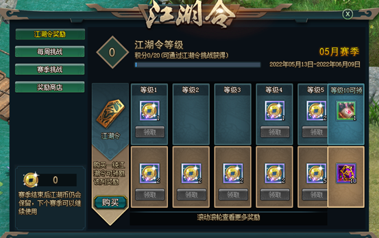 开服前四周,参与游戏内的指定活动如挑战青云峰等活动,达到相应进度即可获得江湖令积分,积分达到一定额度可以获得江湖令的固定奖励,还可以在江湖令商店中自由购买商品。好玩还有奖励,一定不能错过。更高级的一统江湖令,更可获得更多超值奖励。