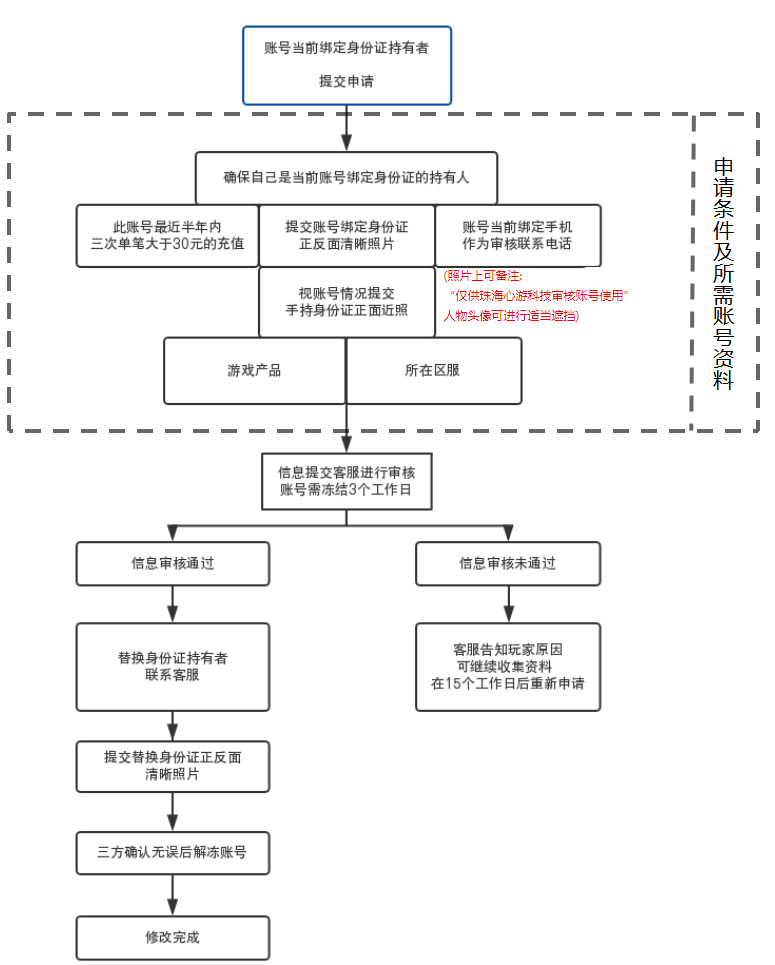 亲爱的大侠们,《逍遥江湖》账号安全信息修改运行期间,在【账号所有人】提出申请的情况下,经过官方审核,可以进行修改身份证相关信息(含身份证号,姓名)。