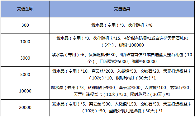 4、领取规则:按账号在活动时间内累充额度计算,玩家选择该账号下任意一个角色领取奖励