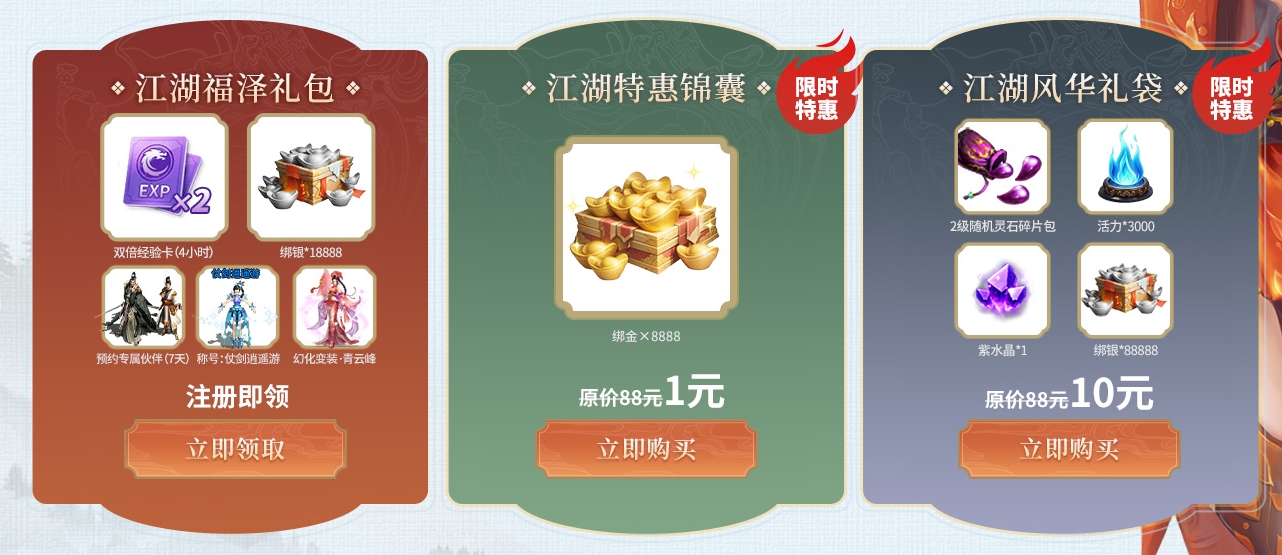 ①全民见面好礼:官网注册,即可领取江湖福泽礼包