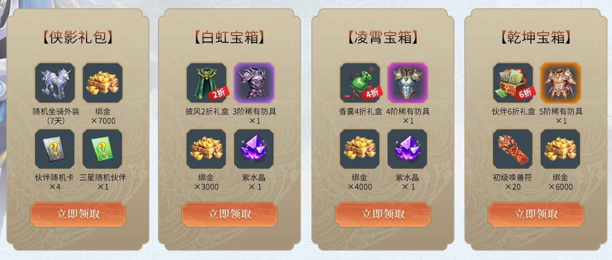 老玩家可获赠专属4重回归福利,最高可得5阶稀有装备、2万绑金、紫水晶、披风、香囊礼盒等多重好礼。