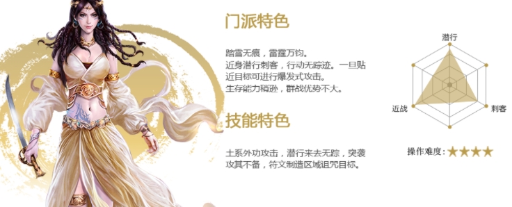 土系外功攻击,潜行来去无踪,突袭攻其不备,符文制造区域诅咒目标。