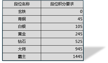 按照段位积分由低到高,分为以下7个段位: